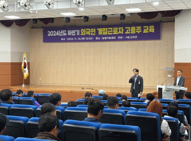이번 실시된 교육은 외국인 계절근로자 관련 인권침해 예방의 중요성이 지속 제기됨에 따라 서로에 대한 문화를 이해하고 계절노동자의 배려를 위해 마련되었으며, 인권 전문가인 문길주 노동권익센터장을 초빙하여 계절근로자의 노동인권 문제 및 피해 상담 사례를 토대로 근로기준법 준수 및 고용주가 지켜야 할 준법사항 등에 관련하여 교육을 실시했다.