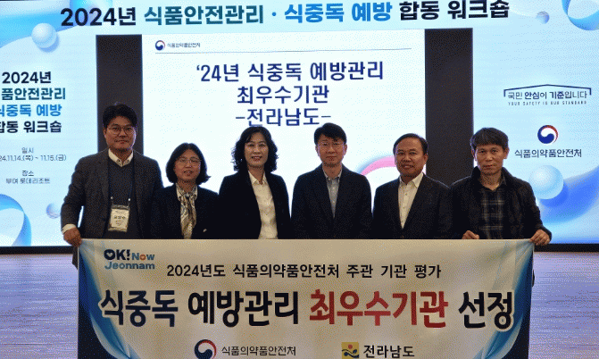 전남도는 또 식품의약품안전처의 2024년 식중독 예방관리 사업 평가 결과 ▲식중독 발생 관리율 ▲식중독 원인식품 규명률 ▲식중독 발생 신속 보고율 ▲식중독 모의훈련 참여도 ▲식중독 예방진단 컨설팅 실적, 5개 지표에서 모두 우수한 성과를 내 최우수기관으로 선정됐다.