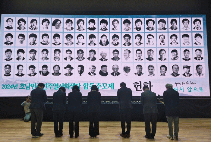 강기정 광주시장은 영상 추모사에서 “무너져가는 민주주의를 바로 세우는 일은 다음 세대를 위한 우리 세대의 책무”라며 “열사들의 마음을 기억하며 앞으로 나아가겠다”고 다짐했다.