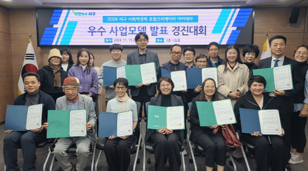 서구는 지난 7월부터 사회적경제 로컬크리에이터 아카데미를 5개월간 진행했으며 서구 주민 및 단체 12개 팀, 총 38명이 참여해 ▲사회적경제기업가 초청 특강 ▲협동조합 교육 및 팀빌딩 워크숍 ▲우수사례 현장 탐방 ▲팀별 전략 컨설팅 ▲우수 사업모델 경진대회 등 실현 가능한 비즈니스 모델 설계 위주의 교육을 받았다.