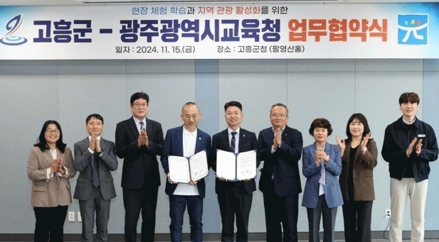 이날 협약식에는 조대정 고흥군 부군수, 최승복 광주광역시교육청 부교육감을 비롯한 관계자 10여 명이 참석해 상호 협력 네트워크 구축과 현장 체험 학습 및 지역 관광 활성화를 위해 함께 논의했다.