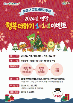 보성군은 이번 이벤트 기간인 11월 18일부터 12월 24일까지 10만 원 이상 기부하고 답례품을 주문한 기부자를 대상으로 경품을 추첨해 증정한다.