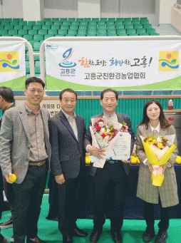 ‘친환경 농업 시책·발전 유공자 표창’ 수상자는 전라남도 친환경 농업협회 감사이자 두원면 친환경 농업단지 대표인 송효수 대표(두원면)이다. 송효수 대표는 유기벼 22.28ha, 무농약 조사료 29.5ha 등을 재배하여 친환경 인증 면적 확대와 농업인들의 친환경 농업 전환을 이끄는 데 적극 기여한 공로로 농림식품부 장관 표창을 받았다.