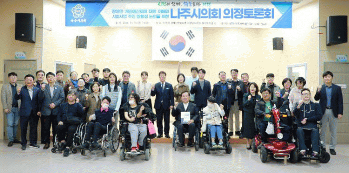 나주시 장애인연합회관 대강당에서 개최된 이번 토론회에는 장애인 개인예산제에 대한 이해를 높이고 나주시 시범사업 추진 방향성 등을 논의하기 위해 마련된 자리로 나주시의회 황광민 의원의 사회로 진행되었다.