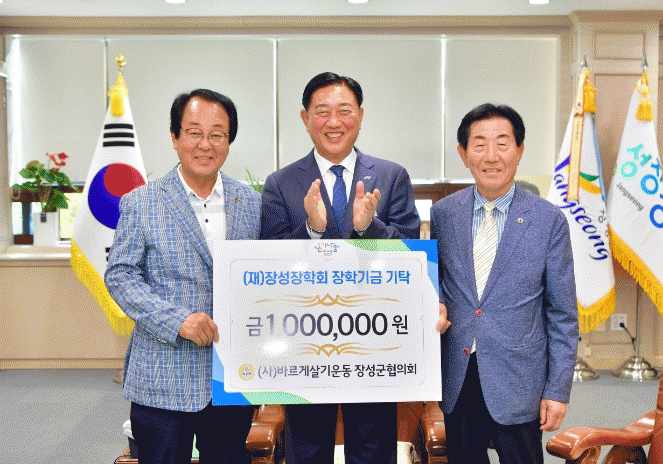 군에 따르면 최근 (사)바르게살기운동 장성군협의회가 장학금 100만 원을 장학회에 기탁했다.