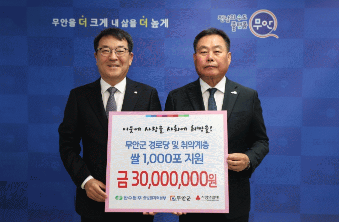 최헌규 한빛원자력본부장은 “무안군과 함께 협의하여 기부한 쌀이 무안군 내 등록 경로당과 취약계층에 잘 전달되길 바란다”며 “지역을 대표하는 기업으로서 지역사회 공익 증진을 위해 앞으로도 최선을 다하겠다”고 소감을 전했다.