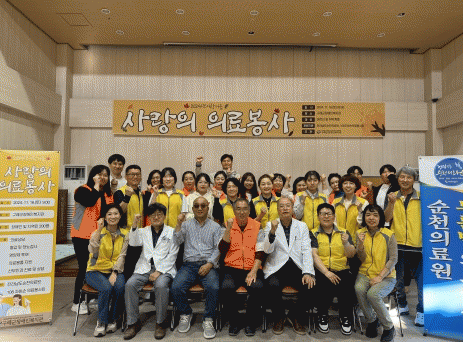 ‘전라남도순천의료원 두룸박봉사단’에서는 김대연 의료원장과 비뇨의학과 정주열 과장의 1:1 진료와 250ml 영양제 투여 및 혈압검사를 지원했고 순천제일대학교 의료재활과에서는 볼을 활용한 전신마사지와 재활치료서비스를 제공했다.