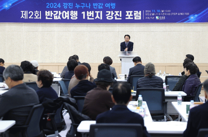 올해 시작과 함께 강진군이 전국 최초로 시행한 ‘누구라도 반값 강진여행’이 군민들의 호응과 관광객들의 방문으로 성과를 나타내고 있다. 이 같은 결과는 각종 경제 지표와 함께 18일 강진군 웰니스 푸소센터에서 열린 제2회 반값여행 1번지 강진 포럼에서 전문가들의 발언과 군민들의 다양한 의견으로 표출됐다.