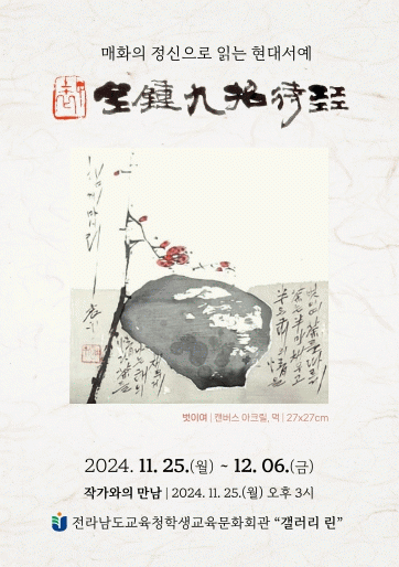 작품에는 “매화의 맑은 정신과 인성을 현대 서예의 표정에서 찾는다” 는 작가의 메시지가 담겨 있으며, 매화가 가지는 정신과 고결함을 현대 서예의 필선으로 다양하게 표현한 작품 20여 점을 선보인다.