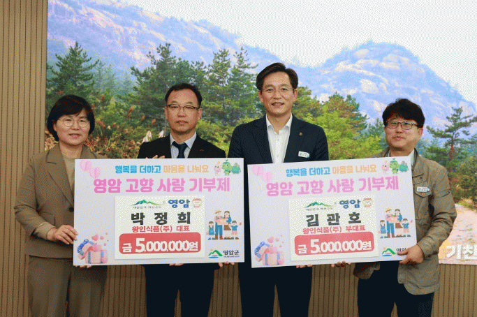 우승희 영암군수는 “남도를 넘어 전국을 대표하는 김치 생산 기업이 해를 이어 고향사랑기부에 참여해 줘서 감사드린다. 소중한 기부금은 영암군민을 위해 꼭 필요한 곳에 쓰겠다”라고 전했다.