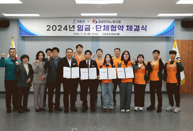 문화현 전남본부장은 “공무직 처우개선을 위해 적극적으로 교섭에 임해 준 고흥군에 감사드리며, 앞으로도 노사가 서로 존중하고 이해할 수 있는 성숙한 노사문화를 만들어 가겠다”고 전했다.