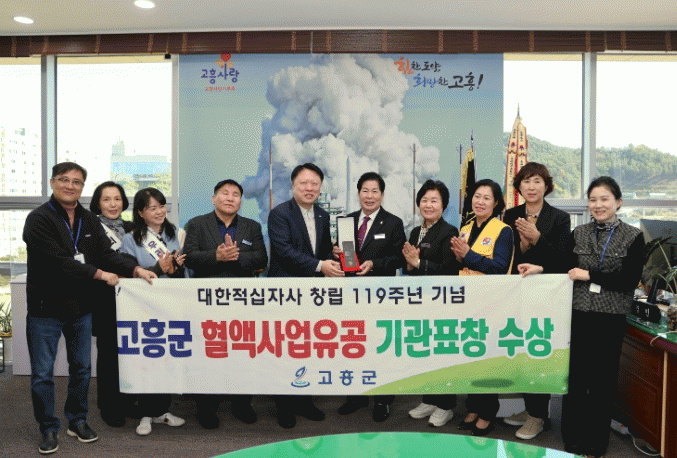 이번 표창은 혈액 수급 안정과 헌혈문화 확산에 공헌한 기관에 수여되는 상으로, 고흥군은 꾸준한 헌혈과 캠페인 활동을 인정받아 수상하게 됐으며, 표창은 광주·전남혈액원의 김동수 원장이 직접 전달했다.