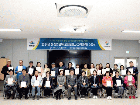 2024년 취·창업 교육 사업은 지난 7월 직업능력 개발, 직업훈련, 직업교육 등 일자리 분야 사업유형으로 공모하여 요양보호사 교육기관이 선정됐으며 프로그램 운영에 따른 직접 경비를 지원했다.