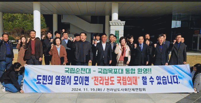 32개 단체로 이루어진 전라남도 사회단체연합회는 성명문을 통해 “목포대학교와 순천대학교가 대학 통합에 합의하고 통합 의과대학 설립을 결정한 것에 대해 온 도민과 함께 환영의 뜻을 표한다”고 밝혔다.