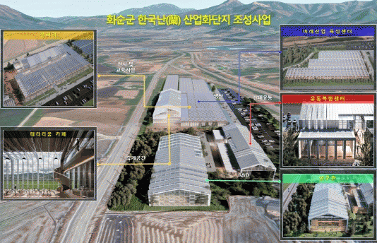 화순군은 ‘한국난 산업화단지 조성사업’을 통해 한국 춘란의 우수성을 전 세계에 알리고, 지속가능한 농업으로 발전시켜 새로운 일자리와 소득을 창출하기 위해 이양면에 2025년부터 4년간 총 320억 원을 투입하여 ▲난초 미래산업 육성센터 ▲유통복합센터 ▲연구관 등을 조성할 예정이다.