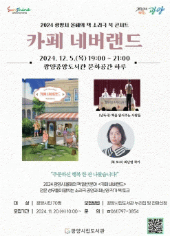 광양중앙도서관은 광양시민 70명을 선착순으로 모집한다. 모집 기간은 11월 20일부터다. 공연은 광양시립도서관 누리집의 ‘독서?문화마당’-‘수강신청’을 통해 신청할 수 있으며 유선 전화로도 신청할 수 있다.