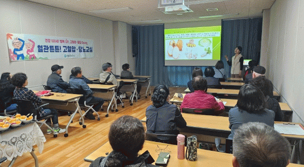 이번 건강교실은 고혈압·당뇨 질환이 있고 혈압·혈당 관리가 필요한 주민 265명을 대상으로 정상 혈압·혈당 수치를 유지하고 합병증 예방 및 저염식이를 실천할 수 있는 기회를 제공하고자 마련됐다.