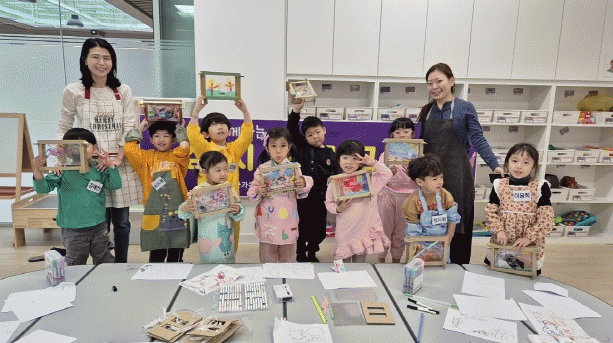 1회기 수업에는 ‘가을 숲은 이렇게 그려요!’라는 주제로, 유아들이 가을의 색감과 이미지를 자유롭게 표현하며 각자의 경험과 생각을 그림에 담는 활동을 진행했으며, 유아들이 그림을 평면에 그리고 입체 공간에 배치하며 공간 구성 능력과 중첩 개념을 자연스럽게 체험했다.