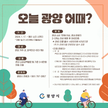 개별·소규모 여행트렌드를 겨냥한 ‘오늘 광양 어때’ 사업이 조기에 마감될 것으로 예상됨에 따라, 광양시는 광양을 방문하려는 관광객들에게 신청을 독려하고 있다.