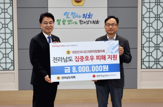 전라남도의회의 기탁금은 적십자 광주전남지사에서 호우피해지역의 생활안정을 위한 물품 지원에 사용될 예정이다.