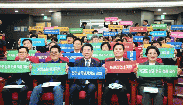김영록 지사는 “수도권 일극체제로 지방소멸 위기는 갈수록 심화되고 국가 경쟁력 약화로 이어지고 있으며, 지방은 권한 부족으로 인구문제 극복 등 시급한 정책 추진에 한계가 있다”고 토로했다. 이어 “지방소멸 위기 극복에 꼭 필요한 일부 분야라도 선제적 자치권을 확보하는 게 전라남특별자치도 설치 목적의 핵심”이라며 “지역 주도의 새로운 발전 모델로 성과를 내 전국적으로 적용·확산되도록 하겠다”고 강조했다. 또한 “연내 특별법 제정을 통해 특별자치도 지위를 획득하도록 지지와 성원을 부탁드린다”고 당부했다.