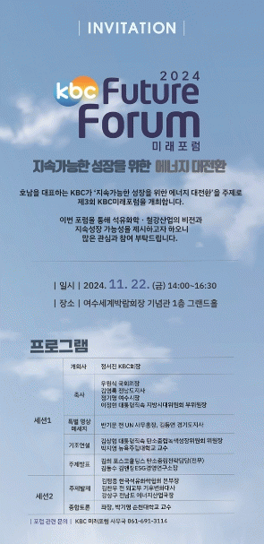 ‘지속 가능한 성장을 위한 에너지 대전환(The Great Energy Transition for Sustainable Growth)’이라는 주제로 개최되는 이번 포럼에는 김상협 국가탄소중립녹색성장위원회 전 위원장과 이정현 지방시대위원회 부위원장, 정기명 여수시장, 정서진 KBC 회장 등 200여 명이 참석할 예정이다.