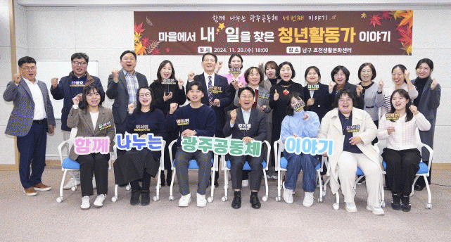 광주시는 20일 오후 광주 남구 효천생활문화센터에서 마을청년활동가 20여명을 만나 ‘마을에서 내 일☆을 찾은 청년활동가 이야기’를 주제로 ‘함께 나누는 광주공동체’ 세 번째 이야기장을 열었다.