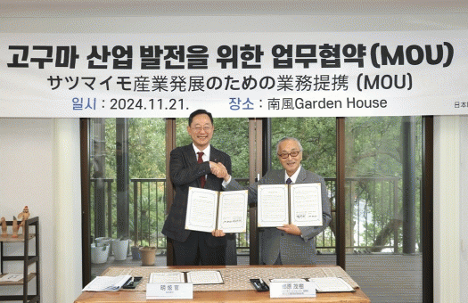특히 고구마 재배와 가공 판매를 비롯해 고구마 산업의 관광문화 발전을 위한 상호 정보교류와 협력을 통해 고구마를 활용한 융복합산업 발전에 협력해 나가기로 했다.