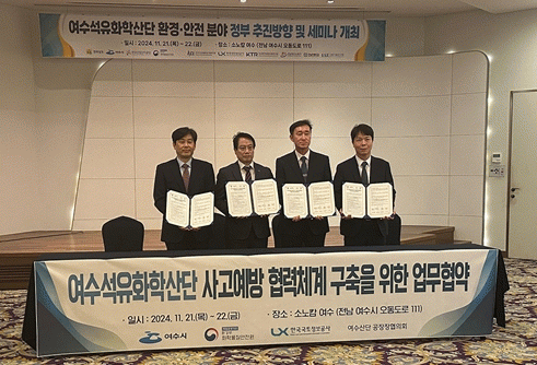 정기명 여수시장은 “이번 협약이 중앙부서와 지자체, 민간이 함께 화학안전을 위해 적극 협력하는 모범사례가 될 것으로 기대한다”며 “사외배관 안전진단 및 감시 시스템 구축, 3차원 공간정보시스템 현행화를 속도감 있게 추진해 근로자가 안심하고 일할 수 있는 산단 조성에 힘쓰겠다”고 말했다.
