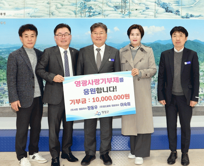 행사를 마친 후 장동우, 이숙희 대표 부부는 “작년에 이어 고향사랑기부에 동참할 수 있어 매우 기쁘다며 주변의 어려운 이웃을 돕는 일은 당연히 해야 할 일이라고 생각하고 있고 앞으로도 영광군 발전을 위해 사회공헌 활동을 지속하겠다.”고 전했다.