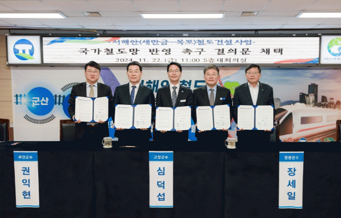 영광군에 따르면 지난 22일 오전 11시 고창군청 대회의실에서 ‘서해안 철도 국가계획 반영 촉구 결의 기자회견’이 열렸다.