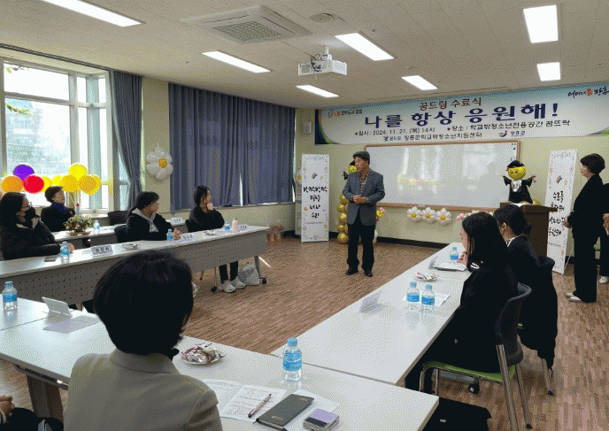 수료식은 2024년 한 해 동안 꿈드림 청소년들의 활동 동영상, 검정고시 합격증, 장학증서 및 장학금 수여, 자격증 전달 순으로 진행됐으며 1388청소년지원단 위원들이 함께 참석했다.