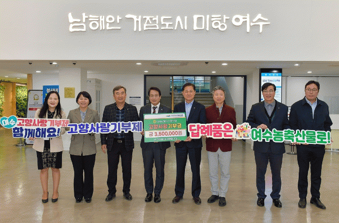 여수시에 따르면 NH농협 재경 여수시향우회원 29명이 고향을 응원하는 마음을 담아 마련한 고향사랑기부금 350만 원을 시에 전달했다고 밝혔다.