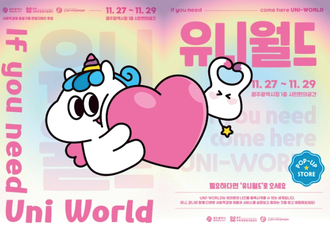 이번 팝업스토어에는 더좋은커피협동조합, ㈜처음한과, ㈜바른핑거스 등 광주지역 사회적경제기업 50개사가 생산하는 다양한 제품과 서비스를 선보인다.