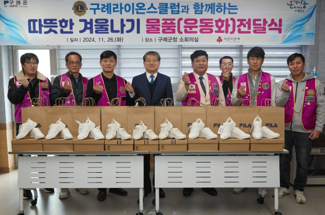 김순호 군수는“경기침체와 한파로 더욱 어려운 시기에 따뜻한 나눔을 실천해주신 구례라이온스클럽에 감사드린다”며 “기탁받은 물품을 감사한 마음으로 잘 전달해 연말연시를 더욱 따뜻하게 만들겠다”고 전했다.