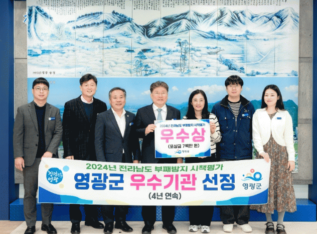 영광군 관계자는 “영광군민 모두가 같이 누리는 영광군을 만들고자 영광군 공직자 한분 한분의 청렴 의지와 노력이 있었고, 그 결과 부패방지 시책평가에서 4년 연속 우수기관으로 선정될 수 있었다”라며, “부패방지 시책평가 우수기관의 명성답게 앞으로도 청렴한 영광군을 유지하기 위해 노력하겠다”라고 말했다.
