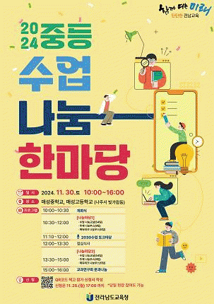 교사들이 올 한 해 실천한 수업사례와 연구성과를 공유하며, 함께 성장하기 위해 마련한 이날 사에는 ▲ 수업나눔교실 ▲ 2030수업 토크마당 ▲ 에듀테크 체험 부스 ▲ 주제 나눔 부스 ▲ 교과교육연구회 분과 나눔 등이 준비돼 있다.