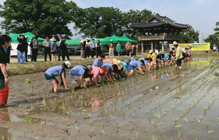 지난 6월 마을 생태교육 논에서 어린이 친환경 손 모내기와 논 생물 관찰 등 생물다양성 체험행사를 했다.