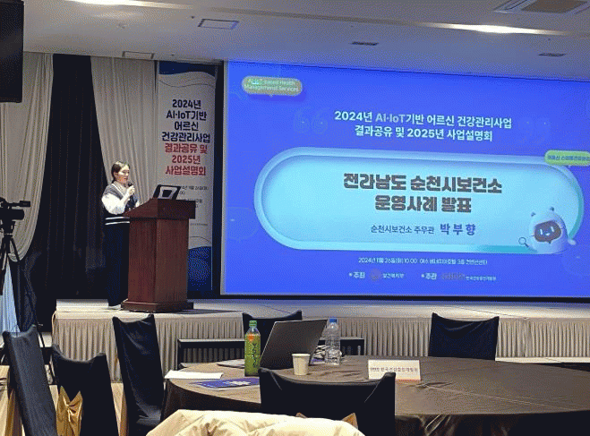 순천시 보건소 관계자는 AI · IoT 기반 어르신 건강관리 서비스를 통해 어르신들의 만성질환 및 자가 건강관리 역량 증진을 도모하여 건강한 100세 인생을 준비할 수 있도록 적극 지원하겠다고 말했다.