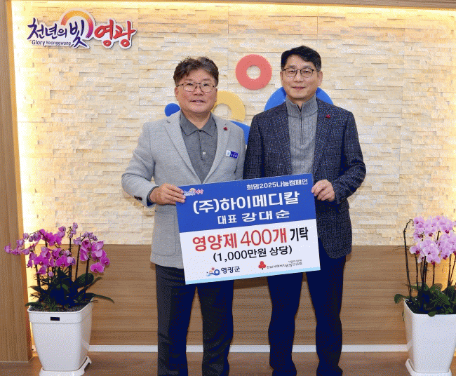 ㈜하이메디칼(대표 강대순)은 의료기기, 건강기능식품 등을 판매하는 의료용품 도매 전문기업으로 지난 2022년부터 지속적으로 영광군에 영양제를 기탁하여 이웃사랑을 실천하고 있으며 영광군 이외도 장흥군, 완도군 등 전남 곳곳에 기부활동을 펼쳐 나눔을 실천하는 착한 기업이다.