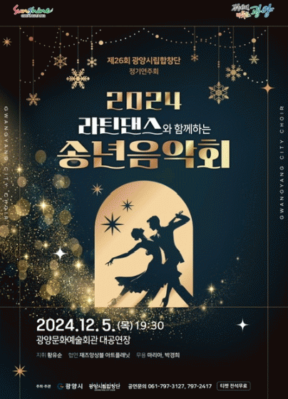 김명덕 문화예술과장은 “다양한 장르의 연주 형태와 합창음악으로 정기연주회가 구성됐다. 12월 5일 공연장을 찾으셔서 광양시립합창단의 아름다운 하모니에 푹 빠져보시길 바라며 얼마 남지 않은 올해 풍성한 연말 보내시기를 희망한다”고 말했다.