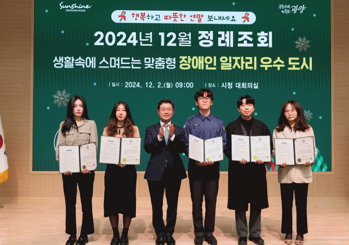 정인화 광양시장은 “한국공공자치연구원 주관 전국 226개 기초지자체를 대상으로 실시한 한국지방자치경쟁력지수평가에서 광양시가 호남 1위, 전국 22위를 달성했다. 또한 보건복지부에서 주관하는 2025년도 장애인일자리사업 우수일자리 우수상을 수상했다”며 우수한 성과를 내기 위해 노력한 직원들을 치하했다.