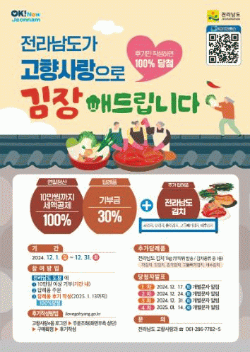 특히 이번 추가 답례품 전남 김치는 노인 일자리 사업에 참여하는 시니어클럽 어르신이 직접 담근 김치를 제공해 눈길을 끌고 있다.