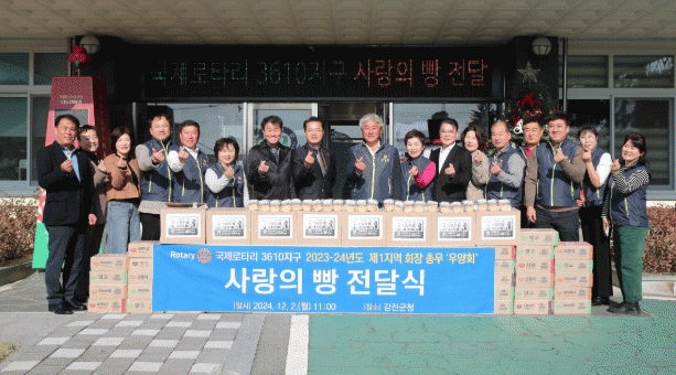 추운 겨울 따뜻한 사랑의 기부가 된 이번 후원은 국제로타리 3610지구 9지역과 여수 1지역 전임회장단들이 함께 참여했다. 강진군 내 읍면 노인복지회관 등 어르신들의 주요 거점 여가복지 시설에 전달되는 이번 후원품은 여수지역 로타리 소속 회원이 운영하는 베이커리에서 참여자들이 1,000개의 빵을 직접 만들고 음료수를 구입해 전달했다. 여수지역에서 먼저 추진해 본 사랑의 빵 나눔 사업이 어르신들에게 큰 호응을 얻으면서 강진지역 어르신들까지 확대 추진했다.