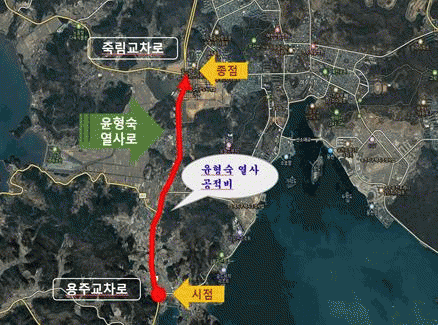 한편, ‘윤형숙열사로’ 명예도로명판은 용주교차로, 윤형숙 열사 공적비 앞, 죽림교차로 등 총 4곳에 설치되어 있다.