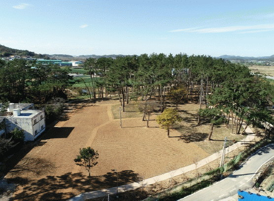 기존에는 폐교 건물 뒤편의 학교 숲이었으나 노후된 야외무대와 벽면 클라이밍 공간 등을 철거하고, 잡목으로 우거진 숲의 밀도를 정리해 소나무의 수려한 경관미를 뽐내게 했다.