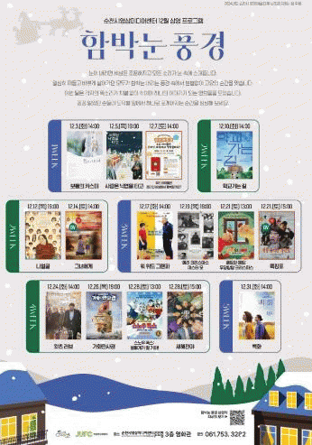 12월 상영과 관련한 일정은 순천시영상미디어센터 누리집에서 확인할 수 있으며 모든 상영회는 무료로 관람할 수 있다.