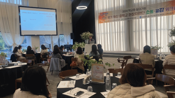 이번 워크숍은 수업·평가 혁신 중학교 현장지원단으로 활동한 교원들을 격려하고, 내년부터 내실 있게 운영되도록 지원하기 위해 마련됐다.