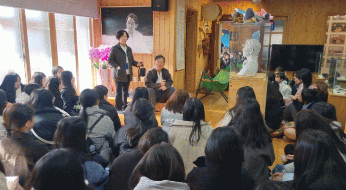 학생들은 한국인 최초로 노벨문학상을 수상한 한강 작가의 아버지이자 지역 대표 문인 한승원 작가의 집필실이 있는 전남 장흥 ‘해산토굴’에서 한승원 작가의 문학 특강을 청취했다.