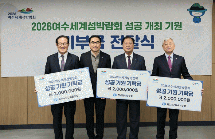 이날 전달식에는 여수수협 김상문 조합장, 전남정치망수협 최길선 조합장, 제3.4구잠수기수협 하재규 조합장이 참석해 기부금을 전달하며, 박람회의 성공적인 개최를 위한 지원과 응원의 뜻을 전했다.